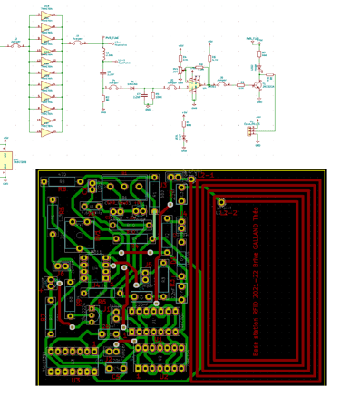 During the second semester, i was tasked with integrating the cards built during the first semester into an integrated project that combined many of the electronic components learned thus far. We also had to designed and assembled additional elements such as a battery level detector.