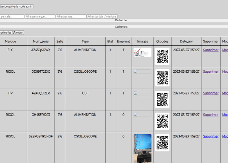 During the third semester, I was tasked with developing a comprehensive project aimed at creating a centralized database. This database was designed to be accessible both through a website and an Android application, providing an efficient way to catalog and manage all the materials within the IUT. The primary objective was to enable users to easily reference and locate equipment, streamlining inventory management and accessibility.